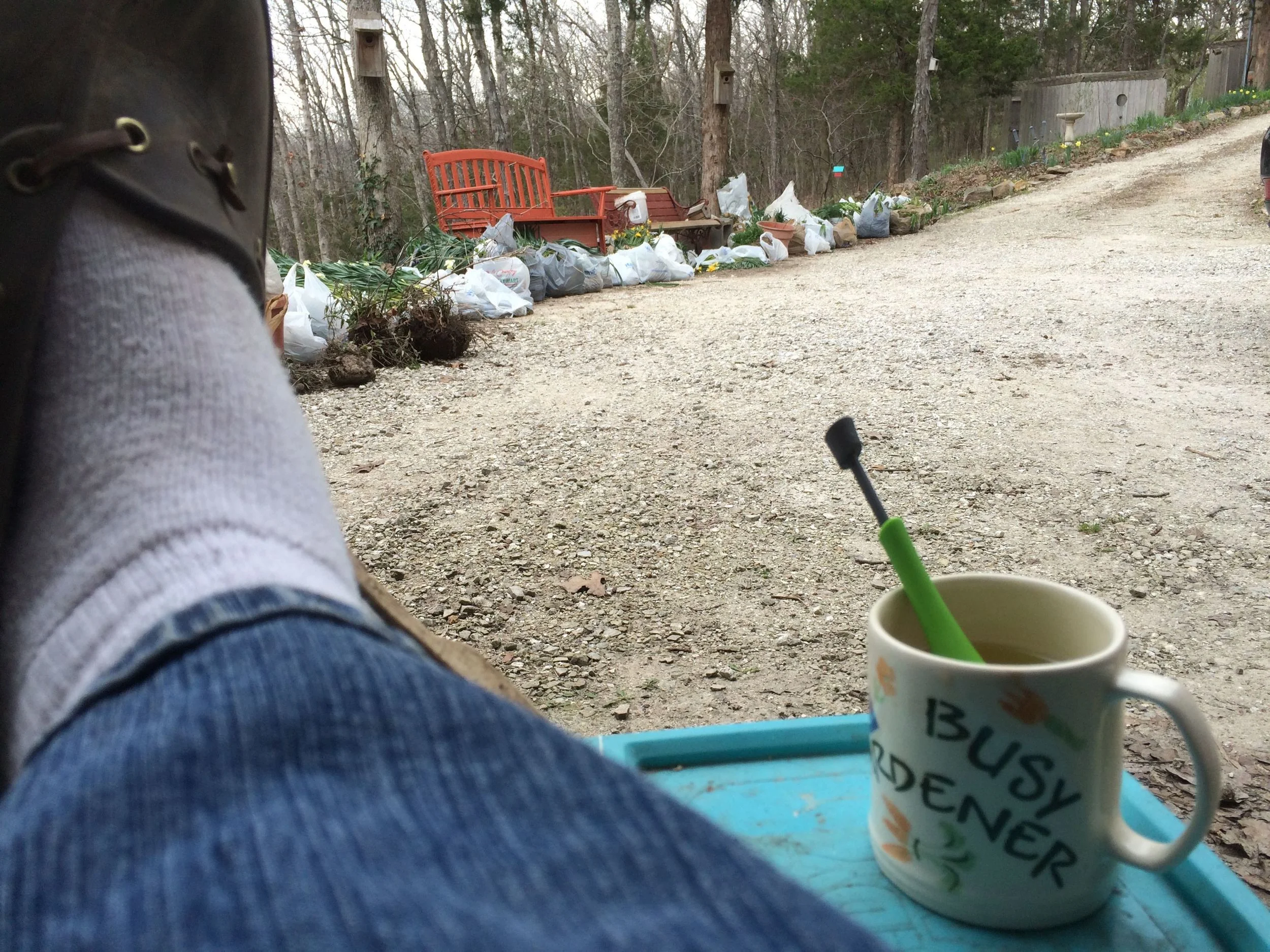Thanks goodness for the excuse to stop long enough to break-in my new teacup. Now the planting starts, again.